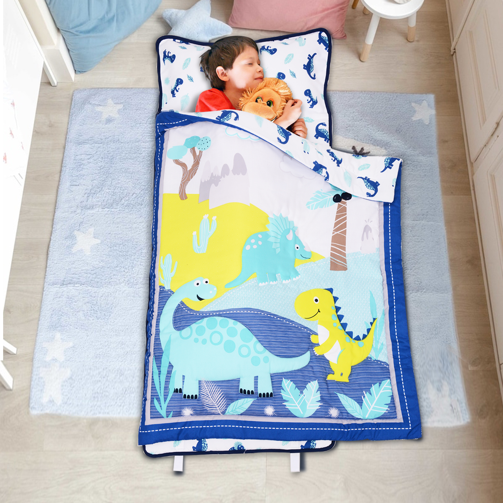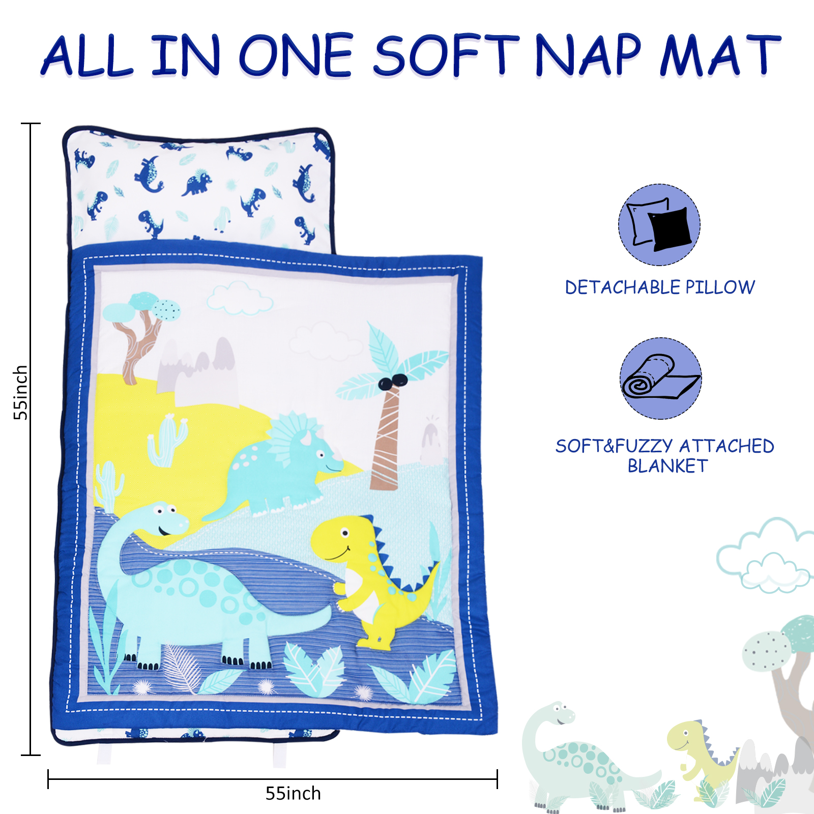 【Comfort Nap-time】The nap mat for preschool boys was made of soft material and had a thick layer of padding, providing the children with a comfortable surface to sleep on. The pillow was just the right size for head. The blanket was a cozy addition, made of a warm fabric. They could wrap themselves up in. Give toddler boys a sweet nap-time.