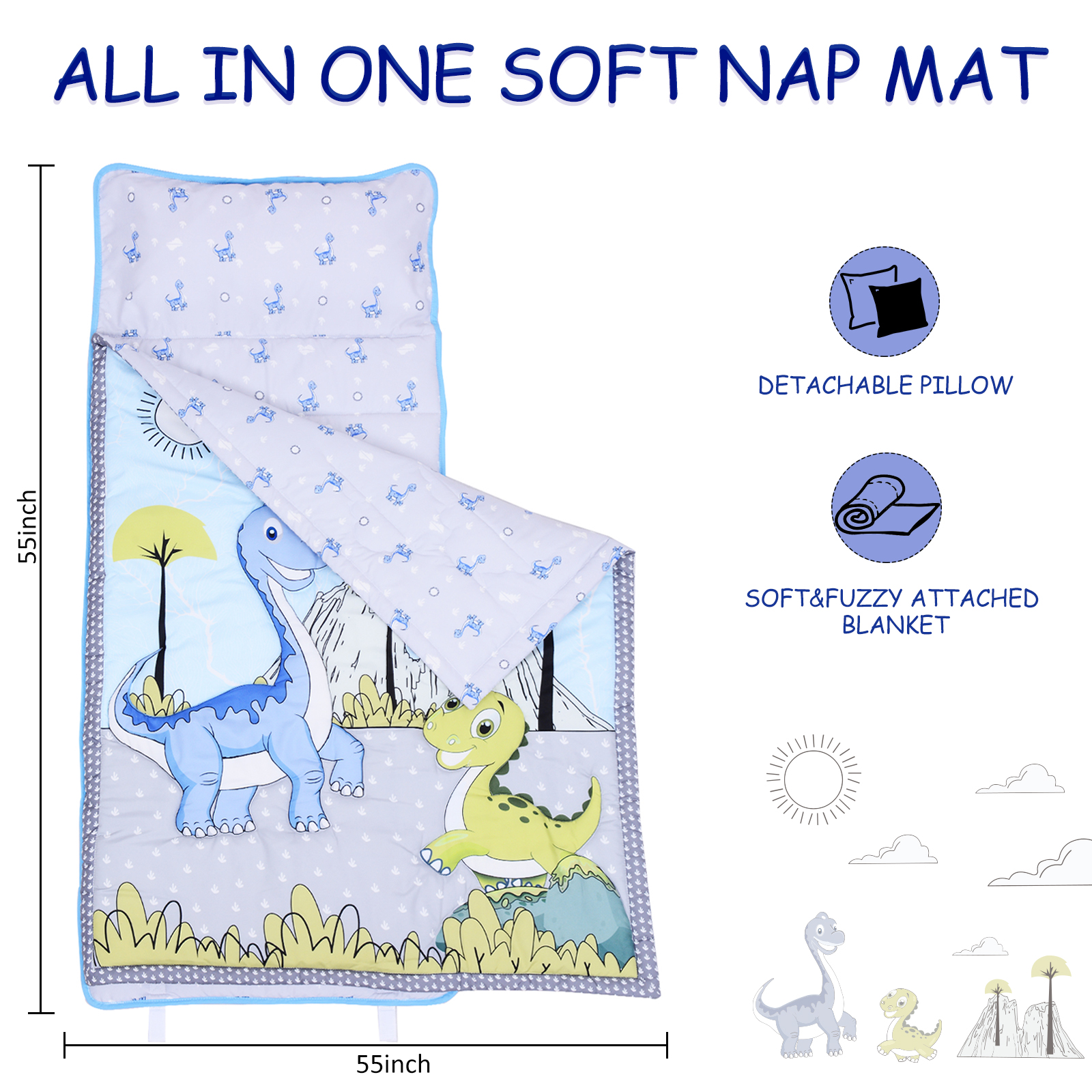 【Comfort Nap-time】The nap mat for preschool boys was made of soft material and had a thick layer of padding, providing the children with a comfortable surface to sleep on. The pillow was just the right size for head. The blanket was a cozy addition, made of a warm fabric. They could wrap themselves up in. Give toddler boys a sweet nap-time.